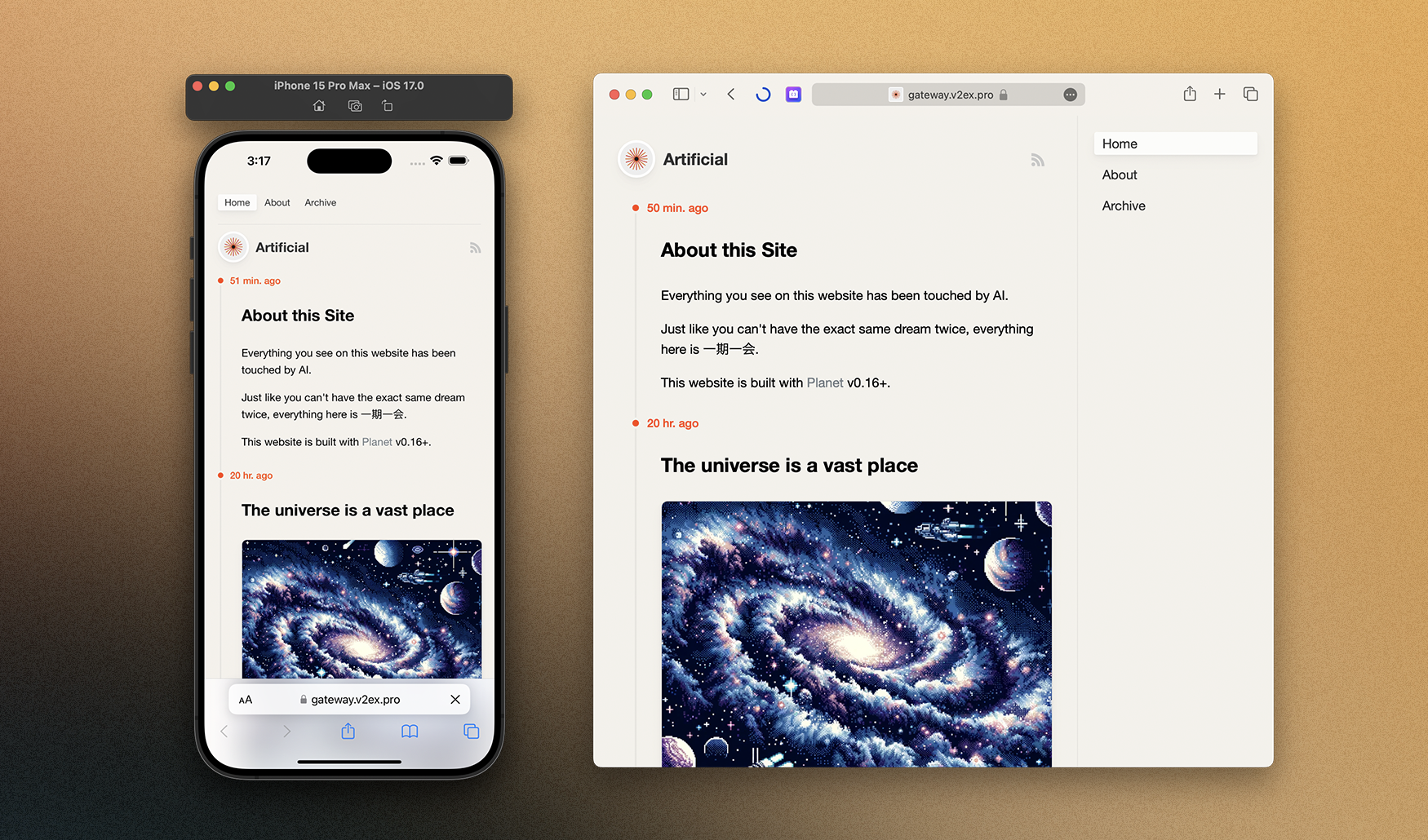 - Minimalist two-column design on desktop